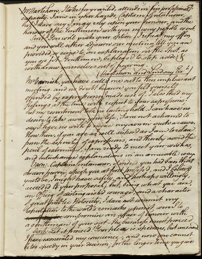 If [Varnish] conceives any little celebrity attach’d to the name of Sentamour, it will only quicken his ambition of becoming more conspicuous. In short, Lindsay he is a duellist, and a duellist is the very pest of Society.